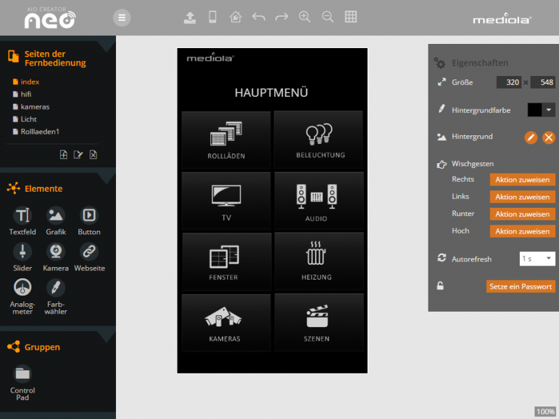 Grafischer Drag'n Drop Editor: Gestalte individuelle Fernbedienungen und Interfaces mit einem benutzerfreundlichen Drag'n Drop Editor.